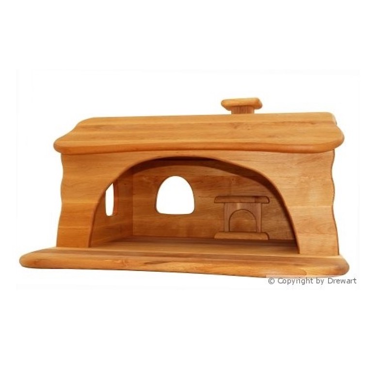 The Drewart Dwarves large wooden house, is a charming little abode, suitable for little dollhouse sized figures, Ostheimer figures and could even house a family of wooden woodland animals. Perhaps a couple of Eve fairies, or even the Three Bears might live in there?