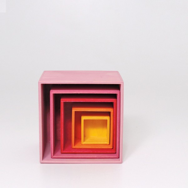 Grimm’s Small Boxes for stacking, nesting, sorting, and storin, In pretty sunset shades of rose pink through to golden yellow.