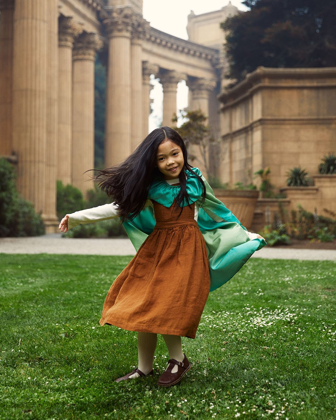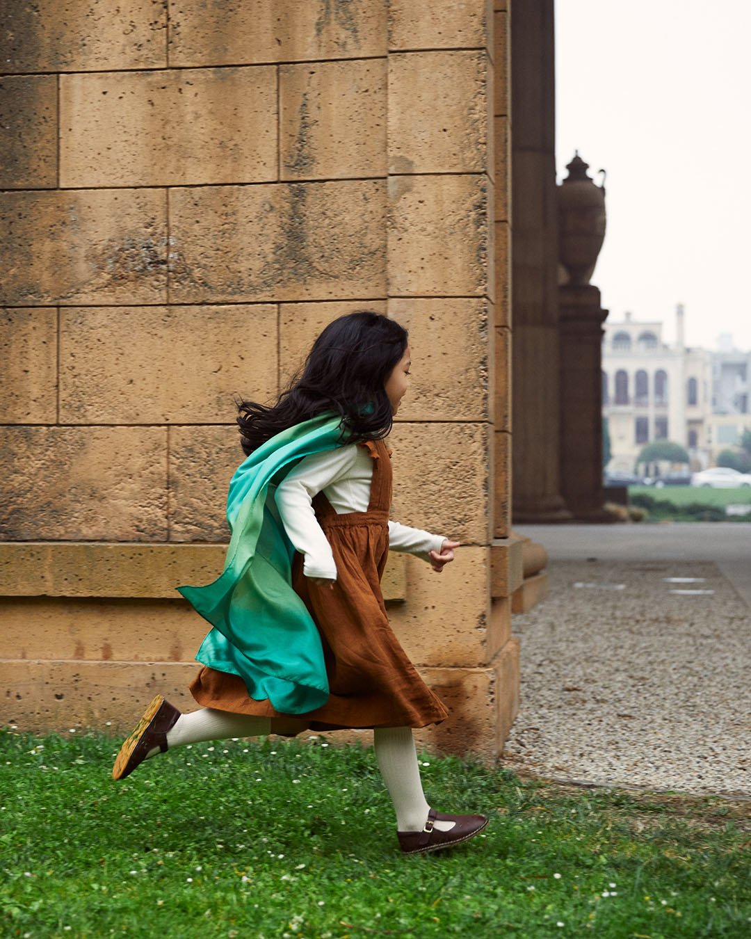 An elastic neckband makes our capes safe, and easy to put on and take off. Elegantly simple for children (grownups could also wear this one as a short shoulder cape!)