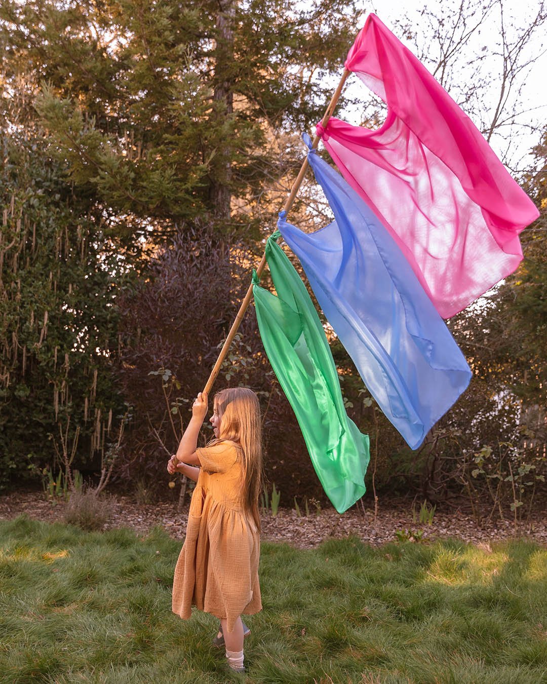 Sarahs silks are a versatile addition to a play collection; for dressups, playscapes, storytelling, nature table backdrops, imaginative games and play,