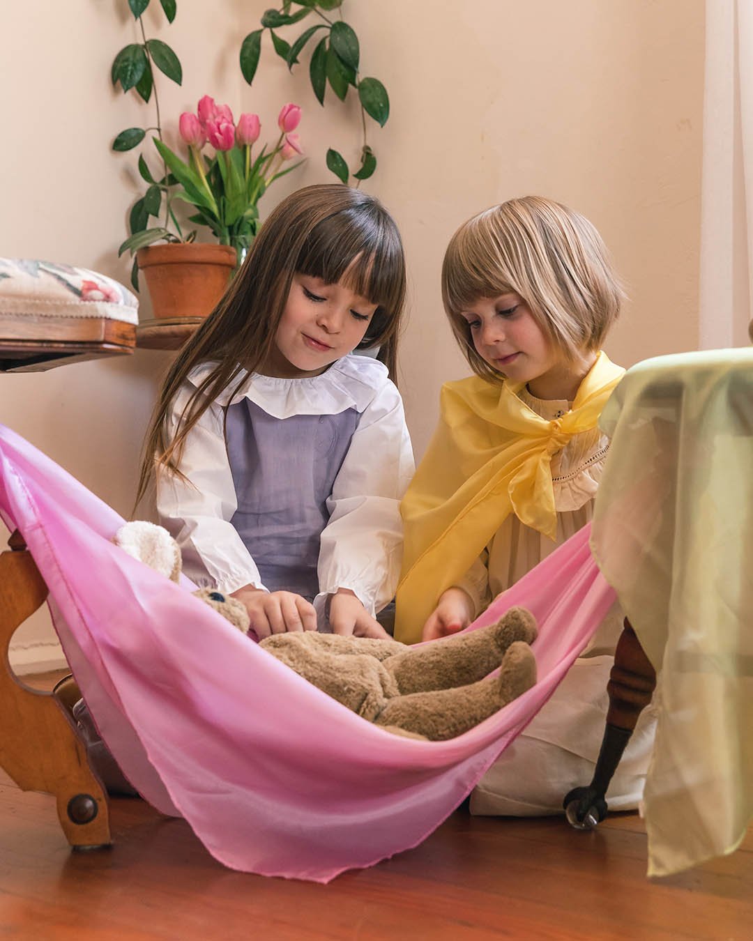 Sarahs silks are a versatile addition to a play collection; for dressups, playscapes, storytelling, nature table backdrops, imaginative games and play,
